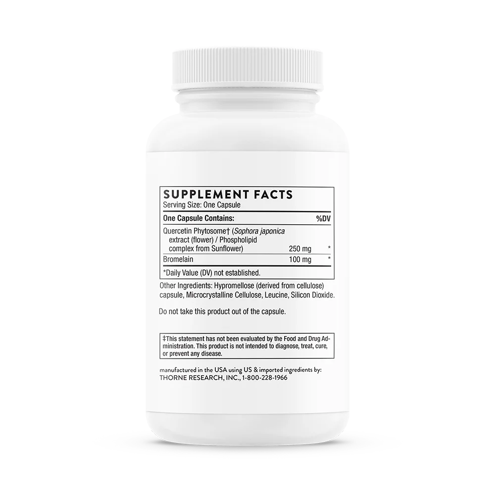 Quercetin Complex combines bromelain, a compound of protein-digesting enzymes, with a highly absorbable form of quercetin.* Quercetin stabilizes the body's mast cells, which store and release histamine.*