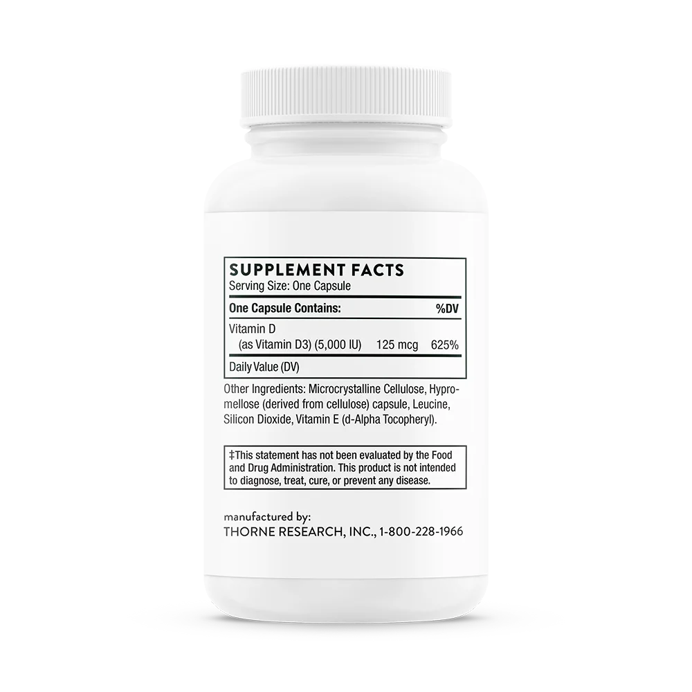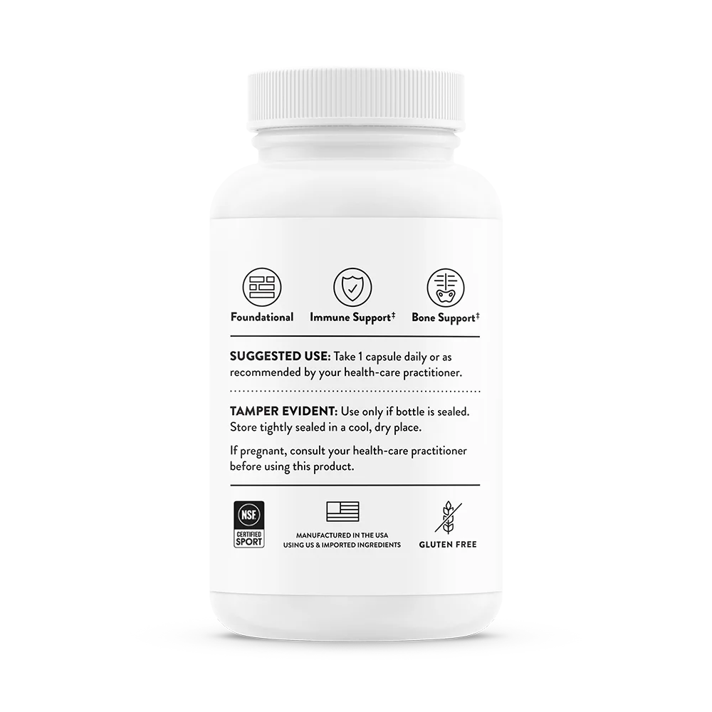 Vitamin D, in its D3 form, is more potent and better absorbed form than its D2 form. Thorne’s vitamin D supplements contain no lactose and no preservatives. NSF Certified for Sport®