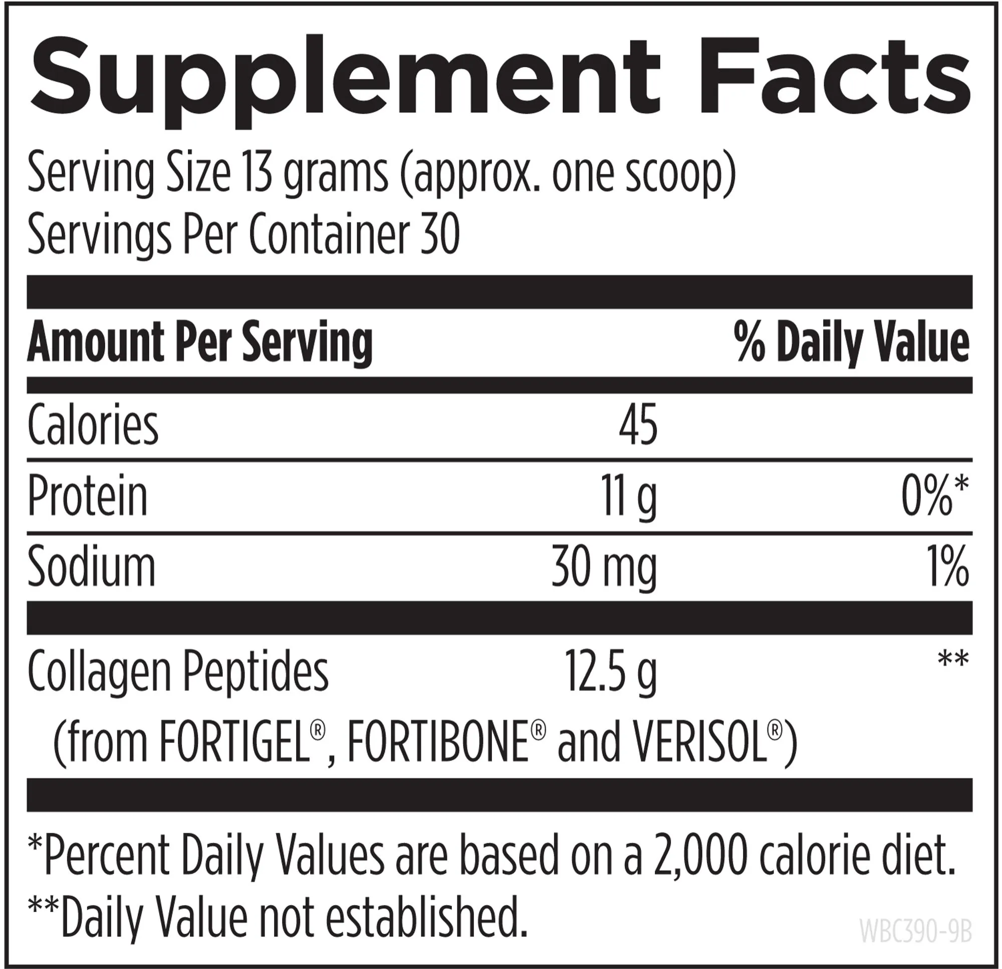 Protein, Sodium, Collagen Peptides (from FORTIGEL®, FORTIBONE® and VERISOL®)