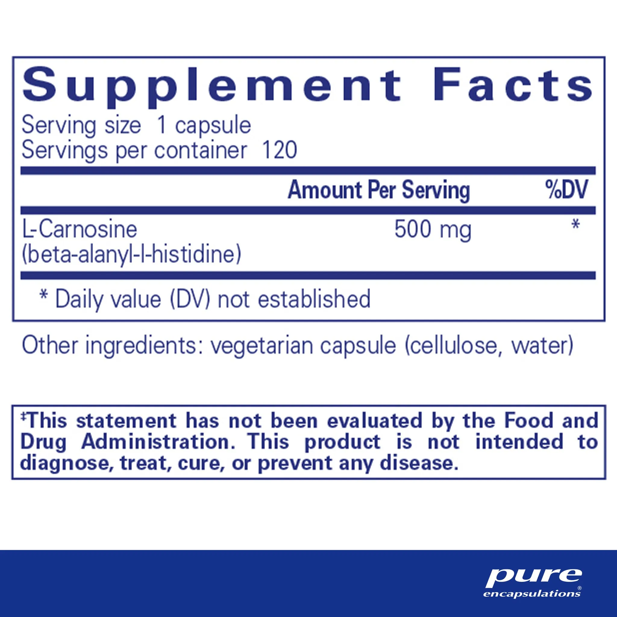 l-carnosine (beta-alanyl-L-histidine), vegetarian capsule (cellulose, water)