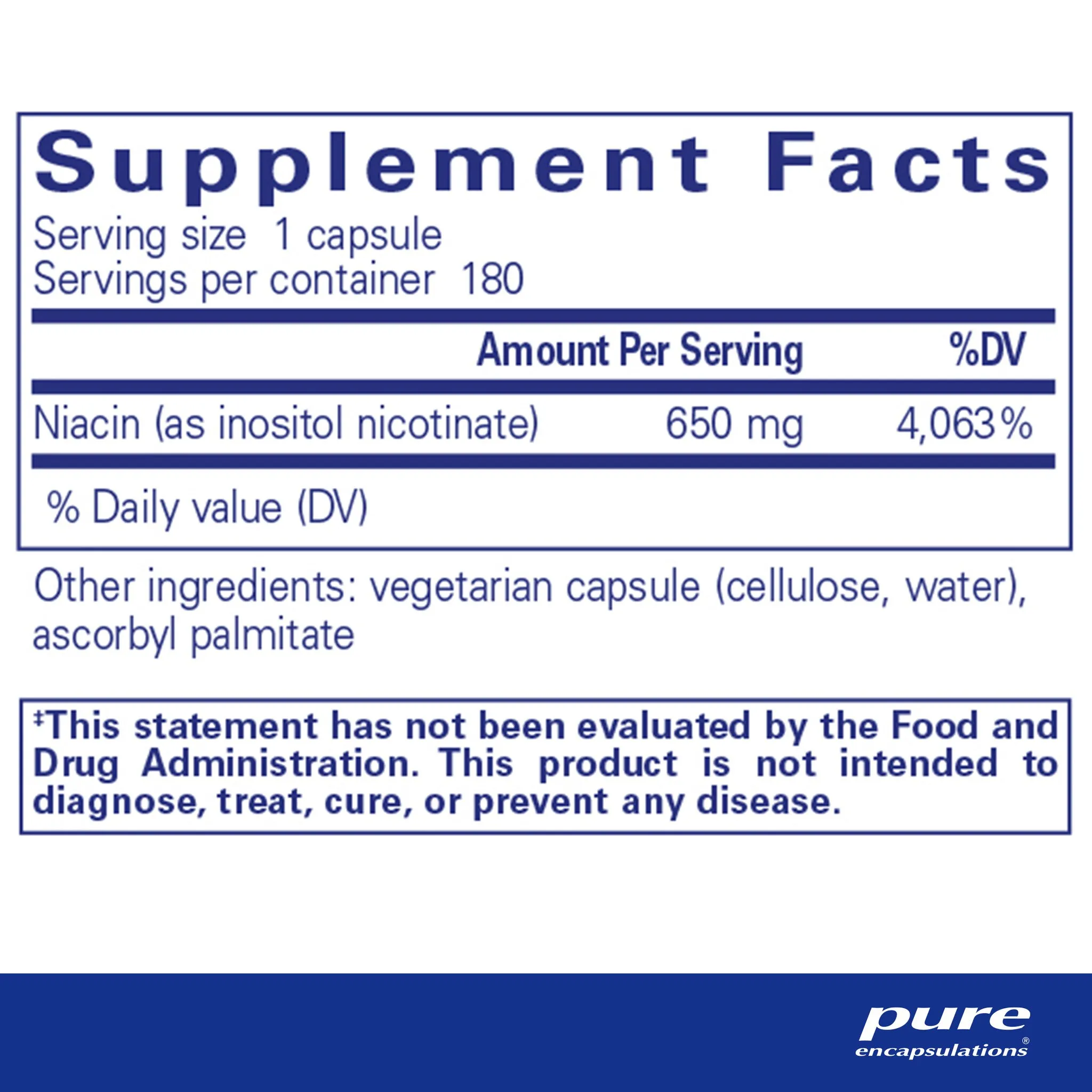 niacin (as inositol nicotinate), vegetarian capsule (cellulose, water), ascorbyl palmitate