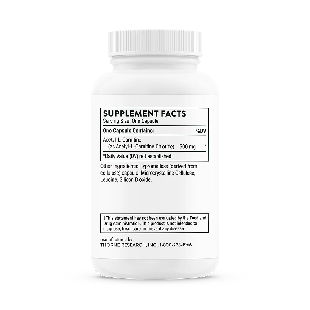 Acetyl-L-Carnitine (as Acetyl-L-Carnitine Chloride), Hypromellose (derived from cellulose) capsule, Microcrystalline Cellulose, Leucine, Silicon Dioxide.