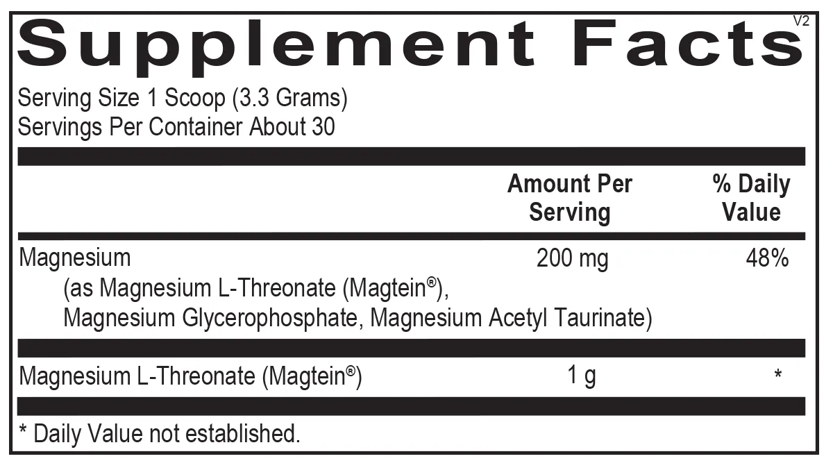 Magnesium (as Magnesium L-Threonate (MagteinĀ®), Magnesium Glycerophosphate, Magnesium Acetyl Taurinate), Magnesium L-Threonate (MagteinĀ®) (null), null