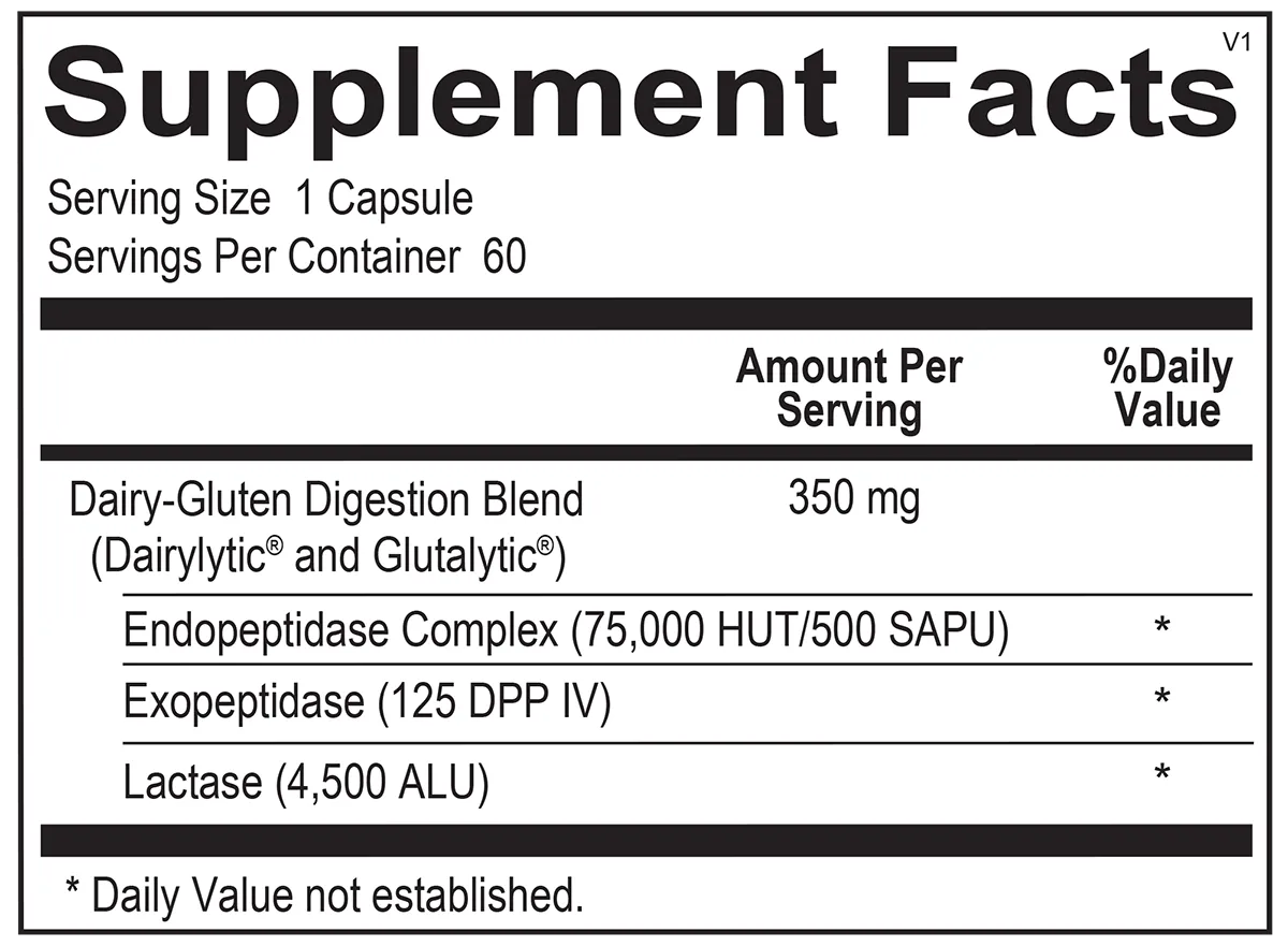 Dairy-Gluten Digestion Blend (Dairylytic® and Glutalytic®), Endopeptidase Complex (500 SAPU), Exopeptidase, Lactase