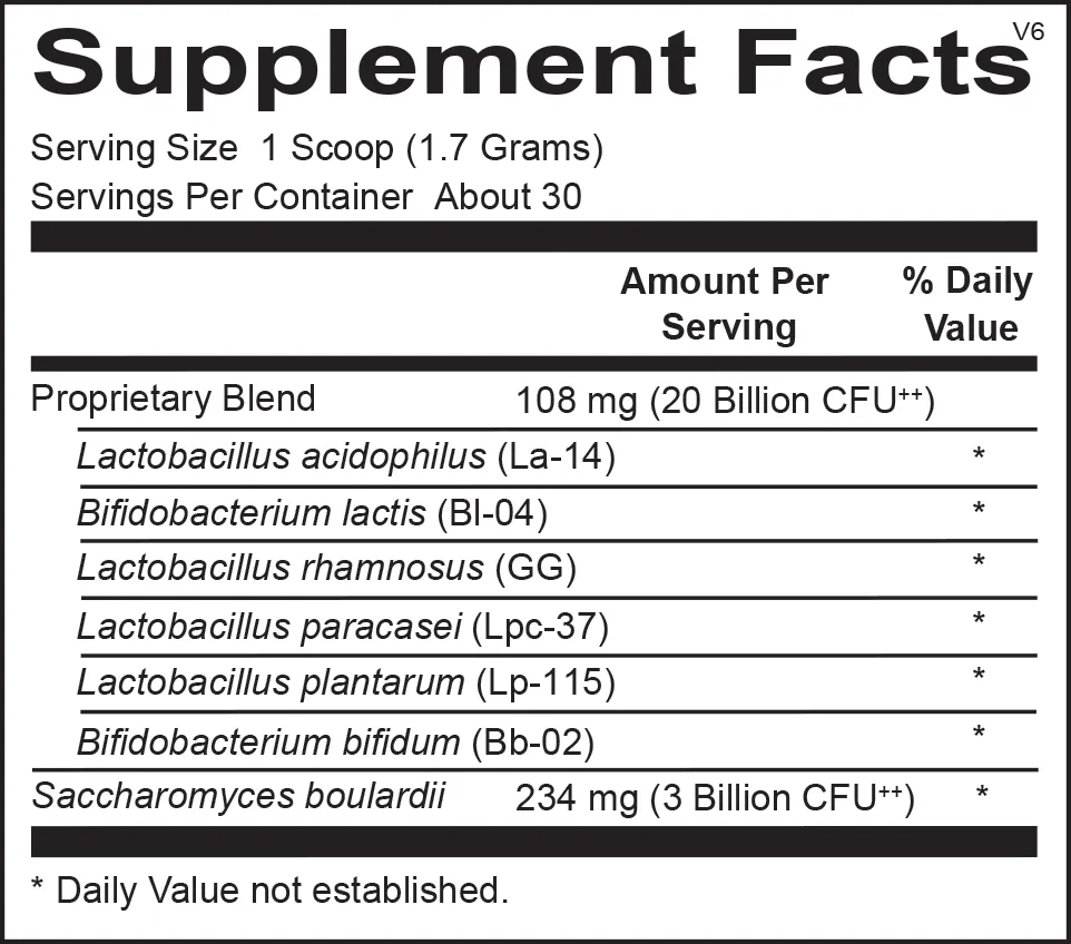 Proprietary Blend (20 Billion CFU++), Saccharomyces boulardii (3 Billion CFU++)