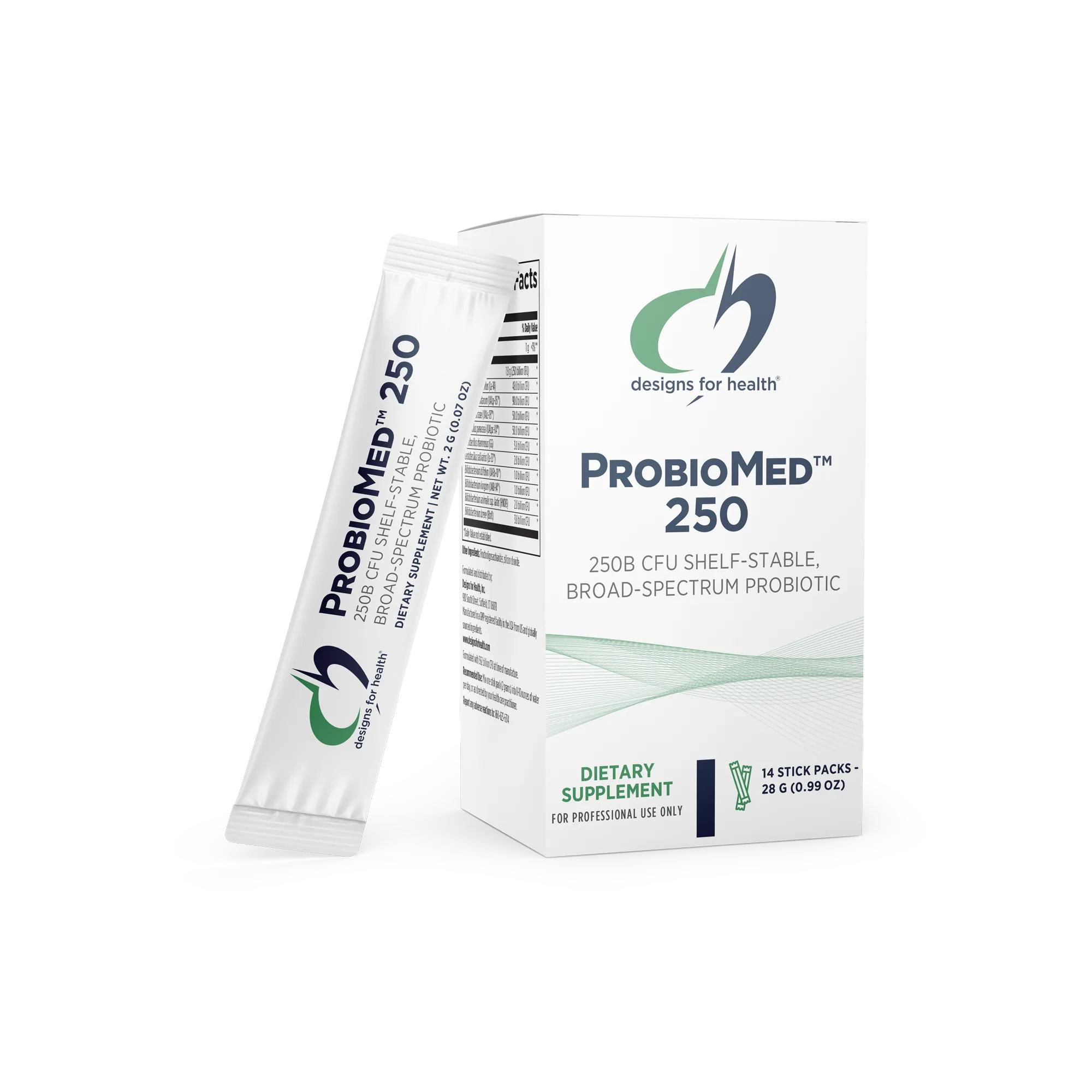 ProbioMed™ 250 utilizes moisture-resistant, oxygen-resistant, and light-resistant stick packs to ensure probiotic viability without refrigeration.