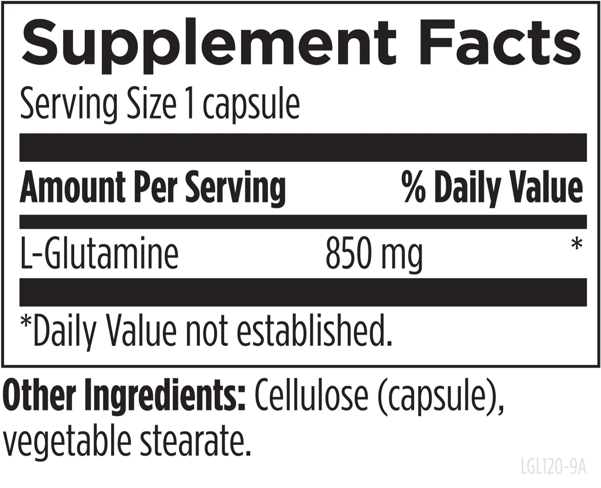 L-Glutamine, Cellulose (capsule), vegetable stearate.