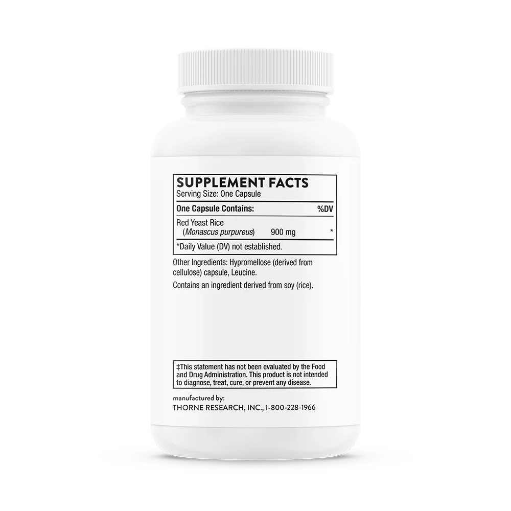 Thorne's Red Yeast Rice provides a concentrated 900 mg dose of Monascus purpureus per capsule, offering a convenient way to supplement dietary and lifestyle modifications for cardiovascular wellness.