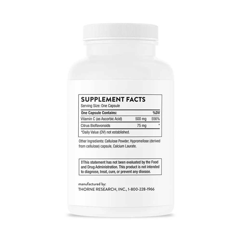 Vitamin C (as Ascorbic Acid), Citrus Bioflavonoids, Cellulose Powder, Hypromellose (derived from cellulose) capsule, Calcium Laurate.