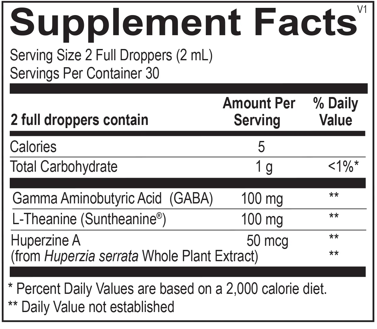 Total Carbohydrate, Gamma Aminobutyric Acid ((GABA)), L-Theanine ((Suntheanine®)), Huperzine A ((from Huperzia serrata Whole Plant Extract))