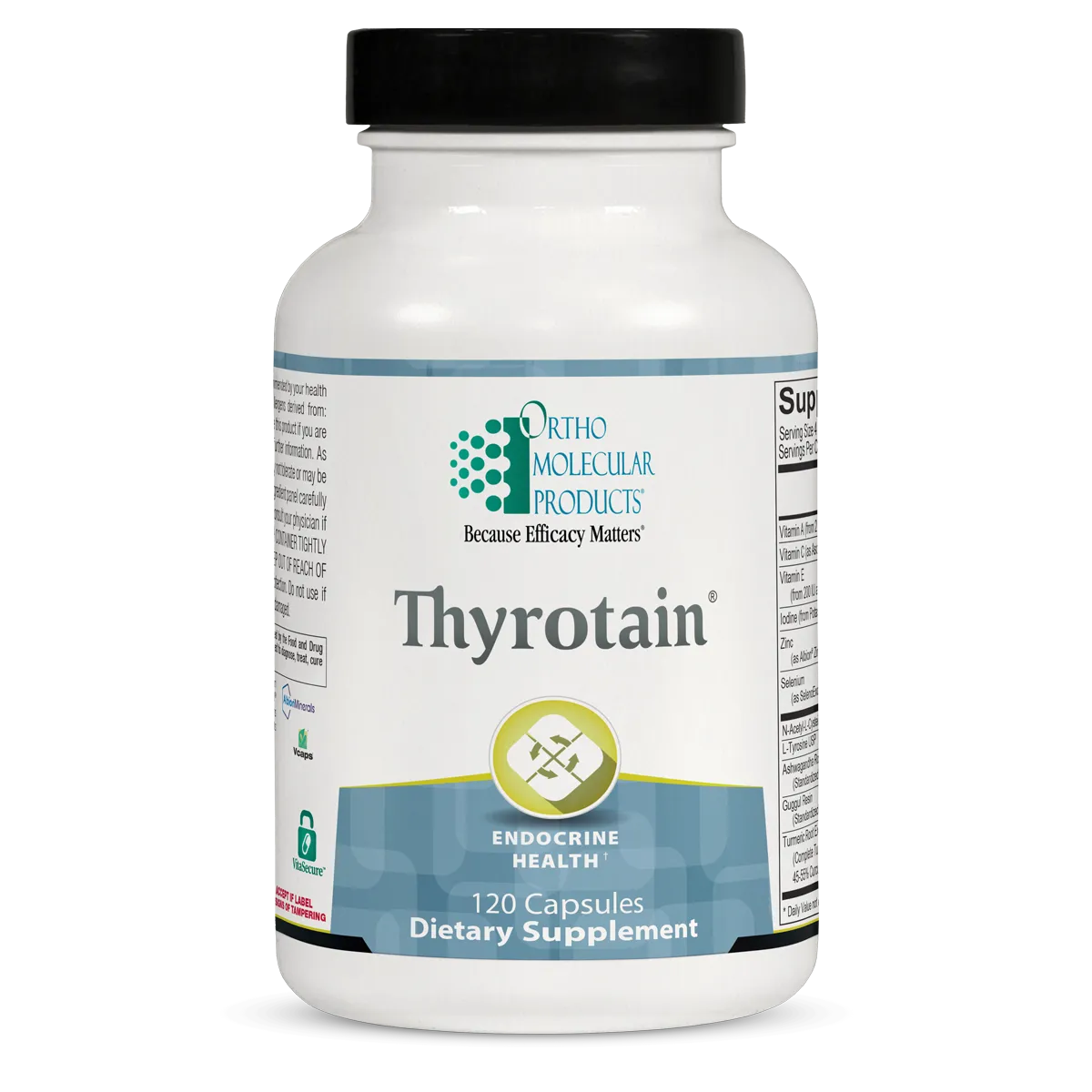 Vitamin A (from 2,500 IU as Palmitate), Vitamin C (as Ascorbic Acid USP), Vitamin E (from 200 IU as d-Alpha Tocopherol Succinate USP), Iodine (from Potassium Iodide), Zinc (as Albion® Zinc Bisglycinate Chelate), Selenium (as SelenoExcell® (a High Selenium Yeast)), N-Acetyl-L-Cysteine USP, L-Tyrosine USP, Ashwagandha Root Extract (Standardized to contain 1.5% Withanolides), Guggul Resin (Standardized to contain 2.5% Guggulsterones), Turmeric Root Extract ((Complete Turmeric Matrix) (Standardized to contain 45-55% Curcuminoids, 3-8% Volatile Oil, 2-6% Turmerin))