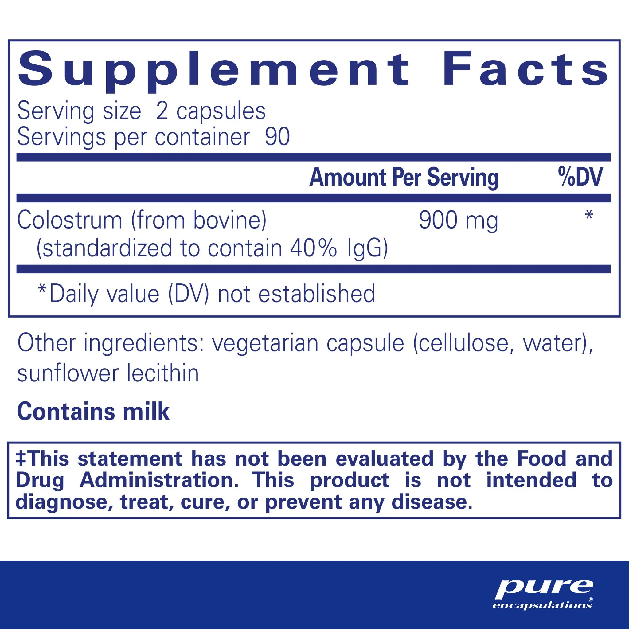colostrum (from bovine) (standardized to contain 40% IgG), vegetarian capsule (cellulose, water), sunflower lecithin