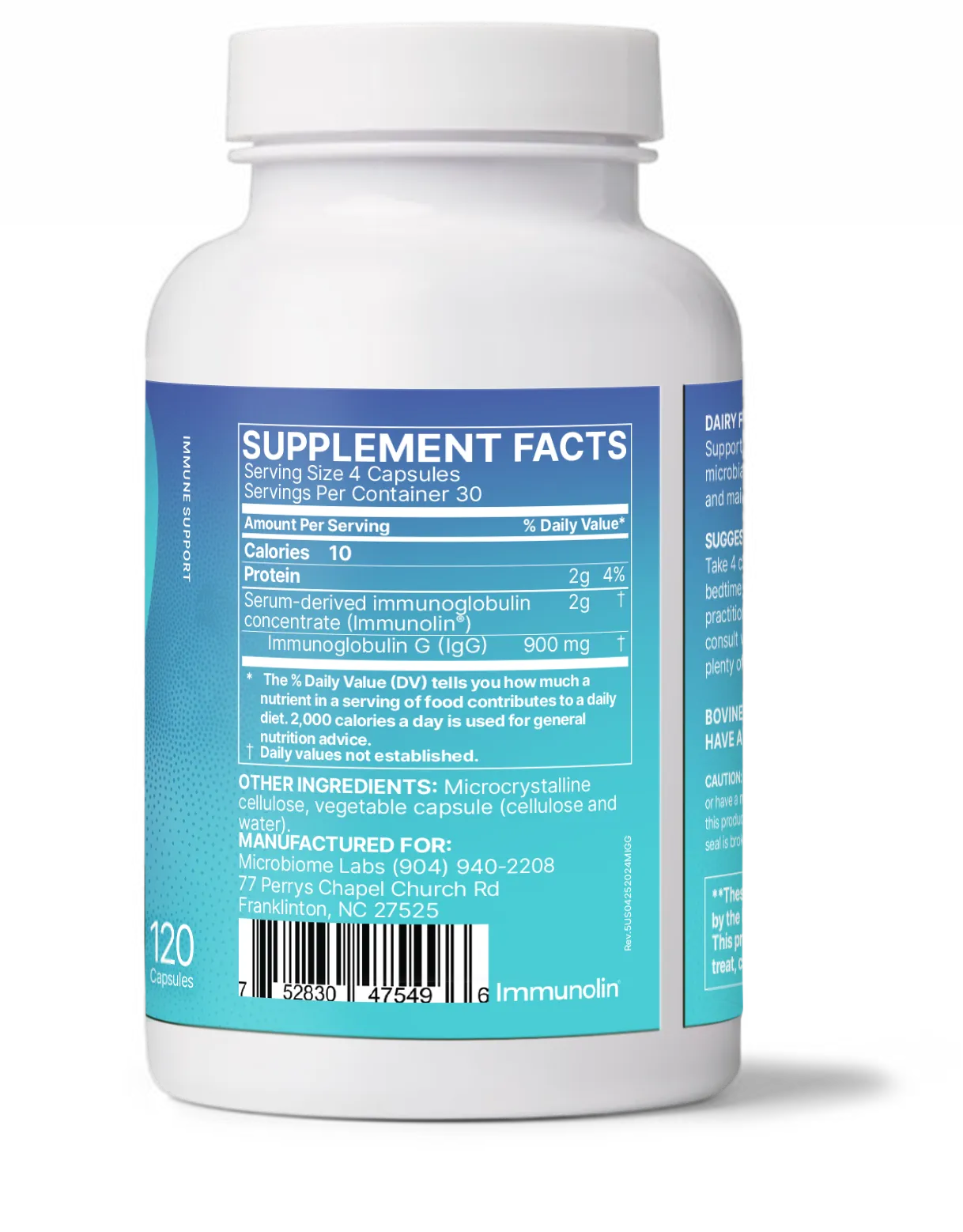 Serum-derived immunoglobulin concentrate (Immunolin®), Immunoglobulin G (IgG), Microcrystalline cellulose, vegetable capsule (cellulose and water).