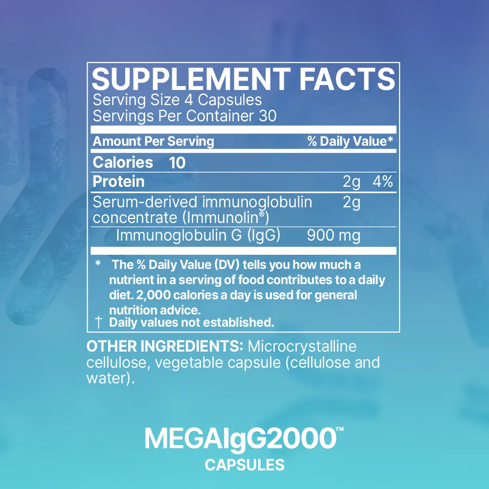 MegalgG2000 is a dairy-free immunoglobulin concentrate that supports healthy immune and digestive function by promoting gut barrier integrity and detoxification.