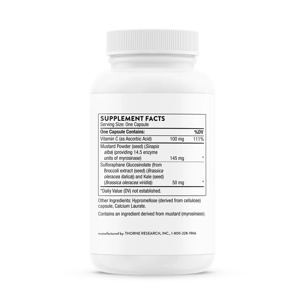 Contains sulforaphane glucosinolate (SGS) from broccoli and kale seed extracts with myrosinase from mustard seeds for optimal bioavailability.