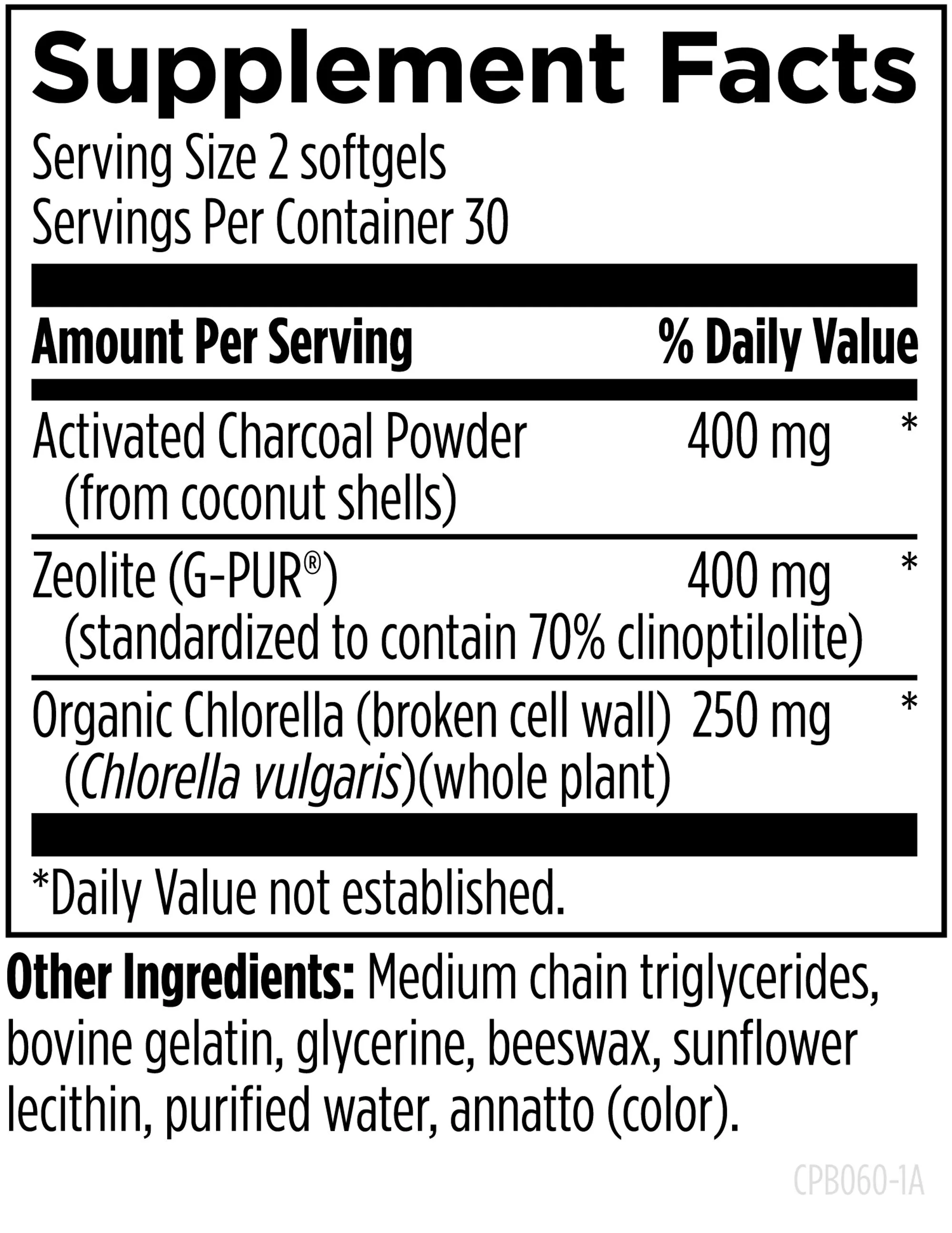 Take 2 softgels per day or as recommended by your health-care practitioner. It is recommended that Charcoal Plus Binder be taken 2 hours before or after any medications or other supplements.