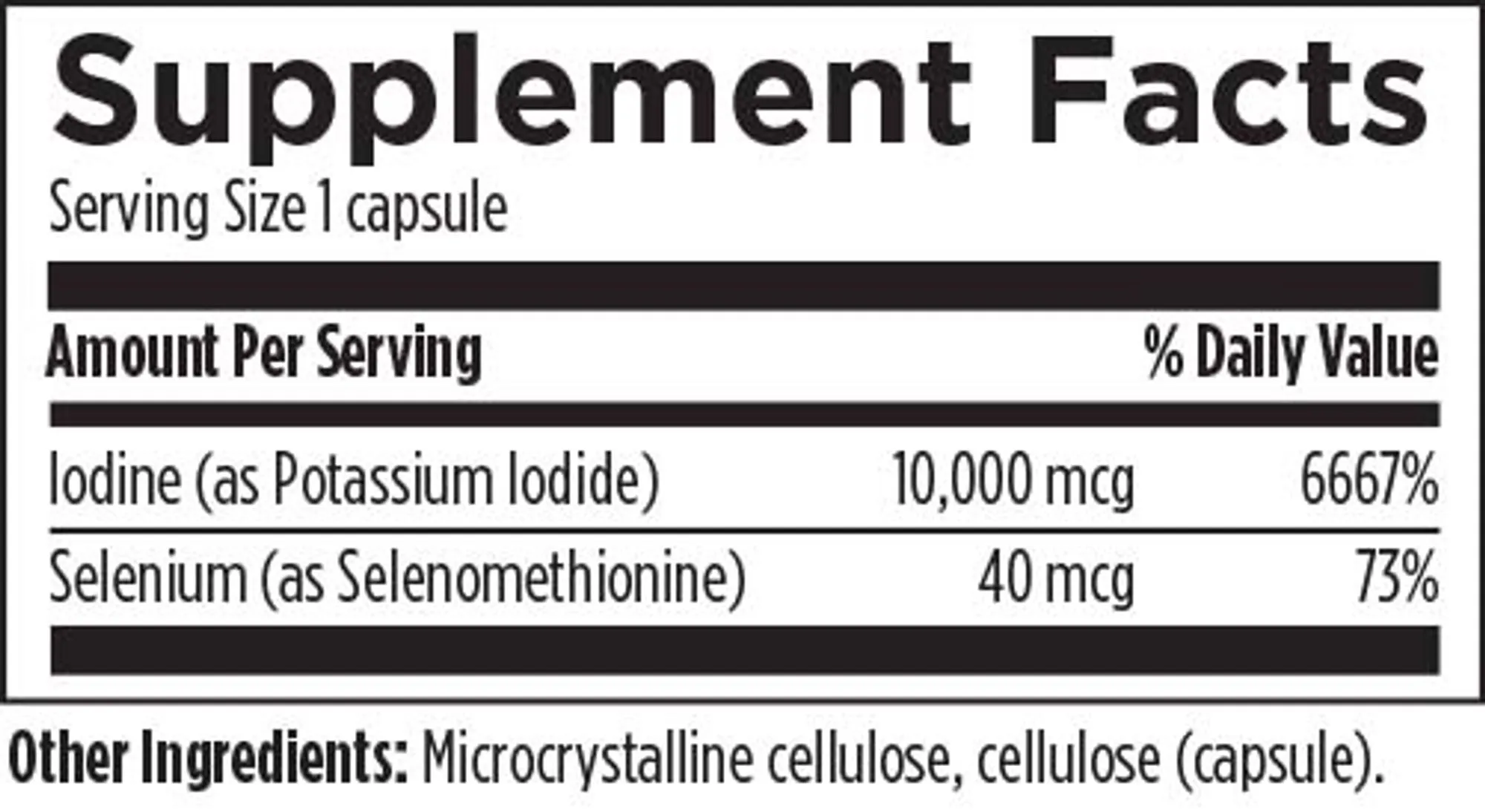 Iodine Synergy™ provides a substantial 10,000 mcg of iodine as potassium iodide, a form that readily dissociates into free iodide ions in the gut for optimal absorption and utilization.