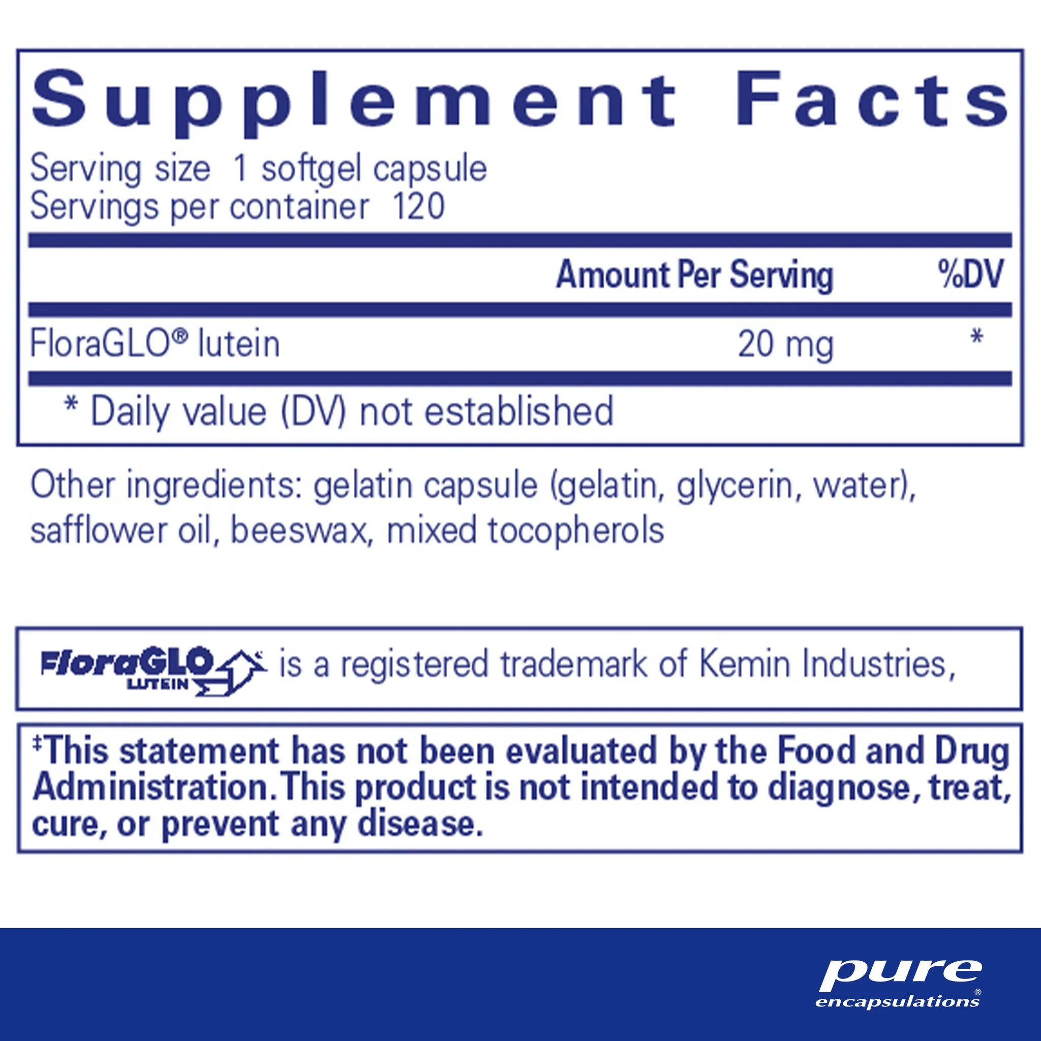FloraGLO® lutein, gelatin capsule (gelatin, glycerin, water), safflower oil, beeswax, mixed tocopherols
