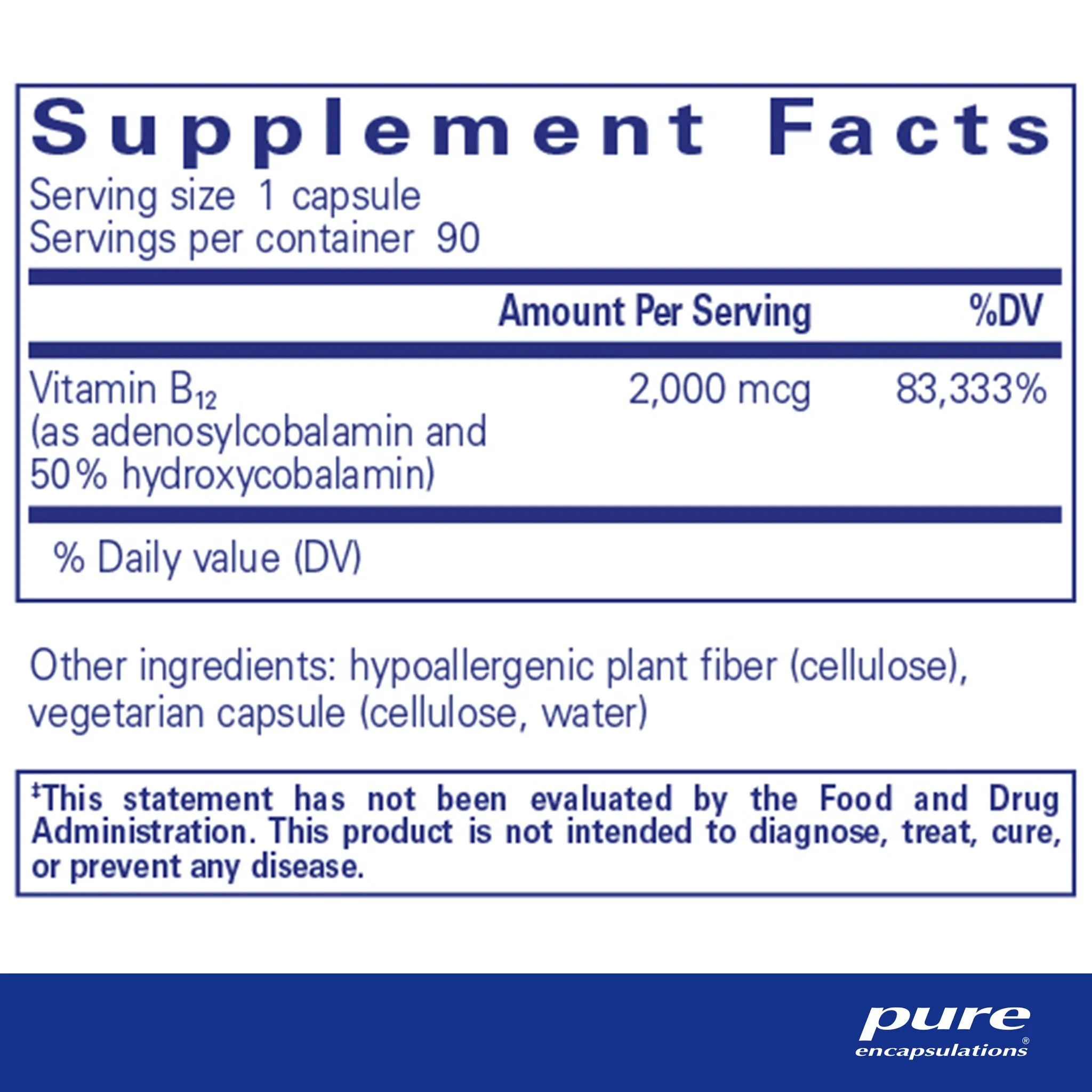 vitamin B12 (as adenosylcobalamin and 50% hydroxycobalamin), hypoallergenic plant fiber (cellulose), vegetarian capsule (cellulose, water)