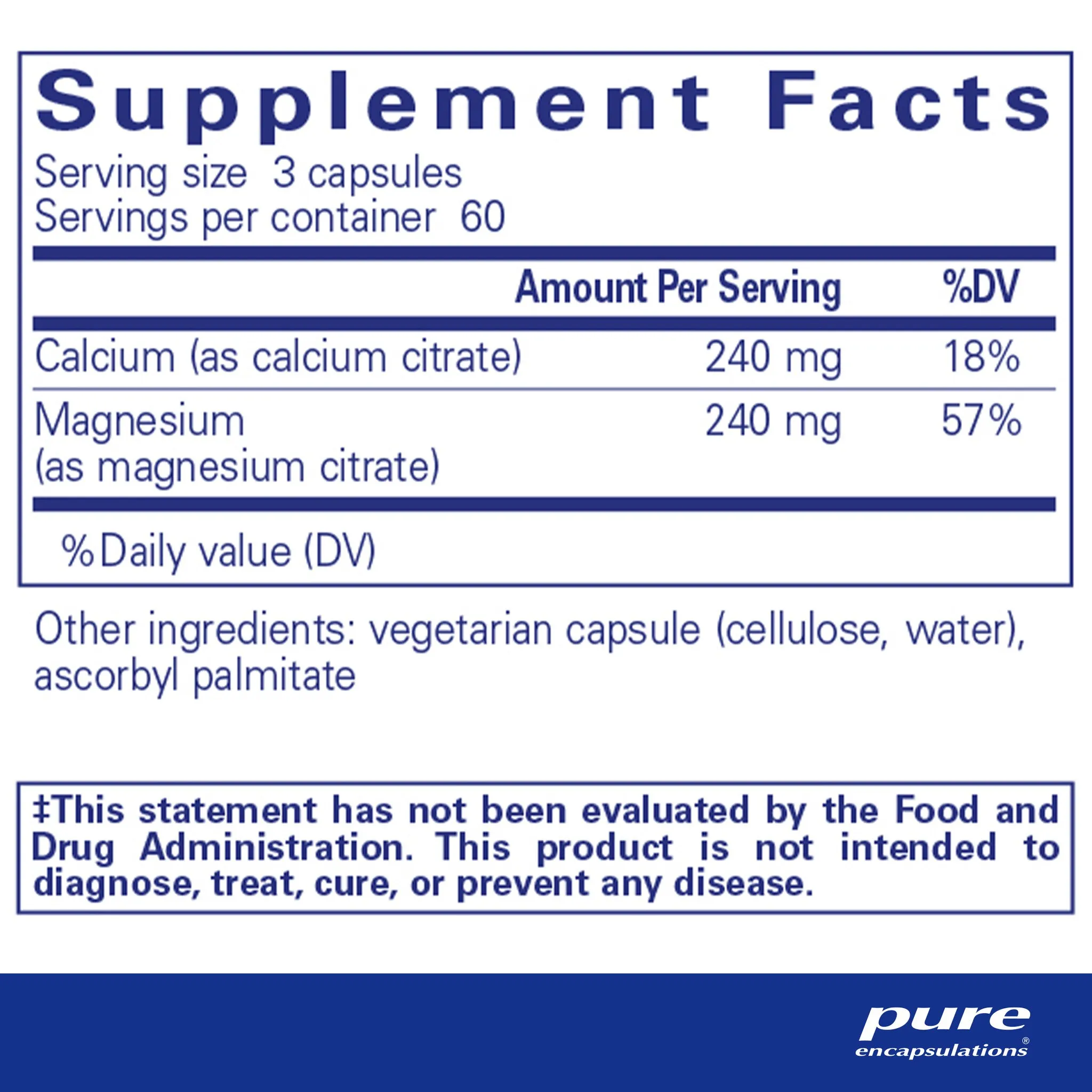 calcium (as calcium citrate), magnesium (as magnesium citrate), vegetarian capsule (cellulose, water), ascorbyl palmitate