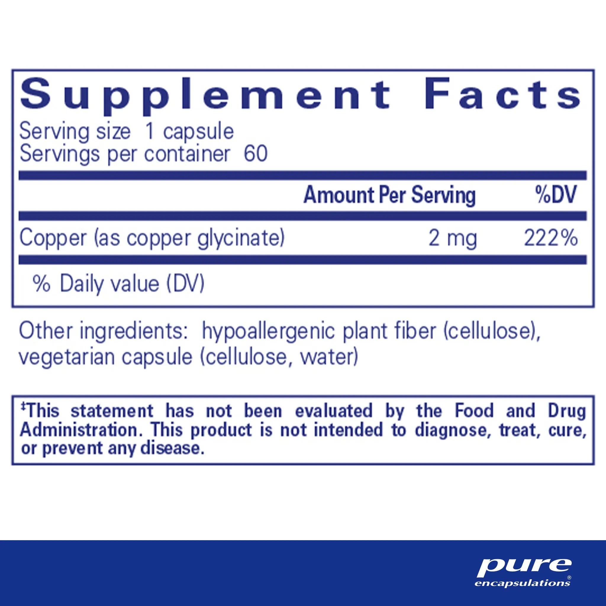 copper (as copper glycinate), hypoallergenic plant fiber (cellulose), vegetarian capsule (cellulose, water)