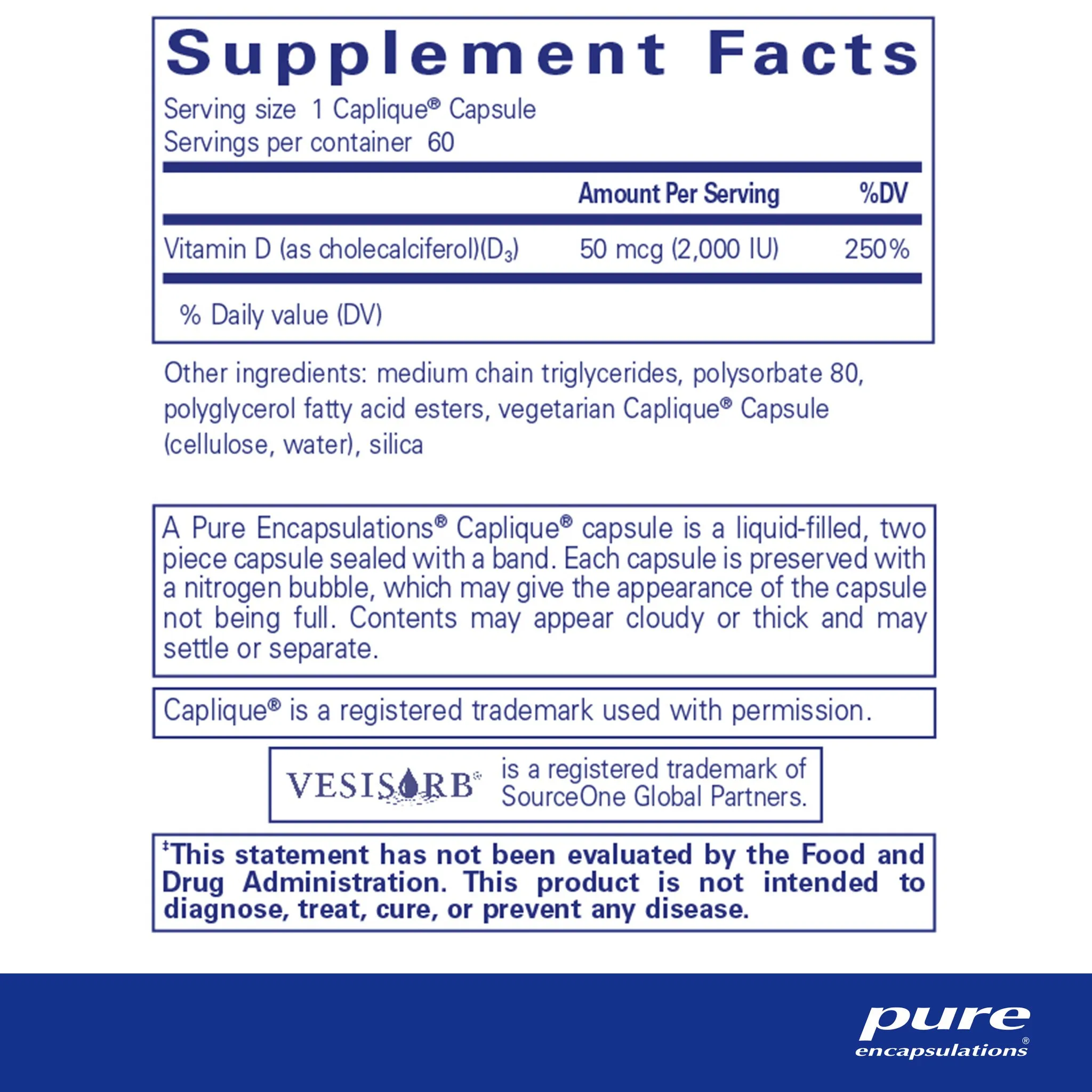 vitamin D (as cholecalciferol)(D3), medium chain triglycerides, polysorbate 80, polyglycerol fatty acid esters, vegetarian Caplique® Capsule (cellulose, water), silica