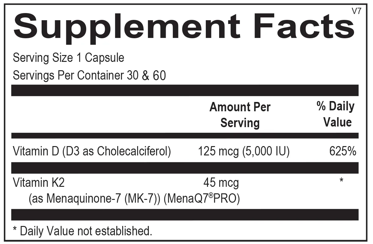 Vitamin D (D3 as Cholecalciferol), Vitamin K2 (as Menaquinone-7 (MK-7) (MenaQ7®PRO))