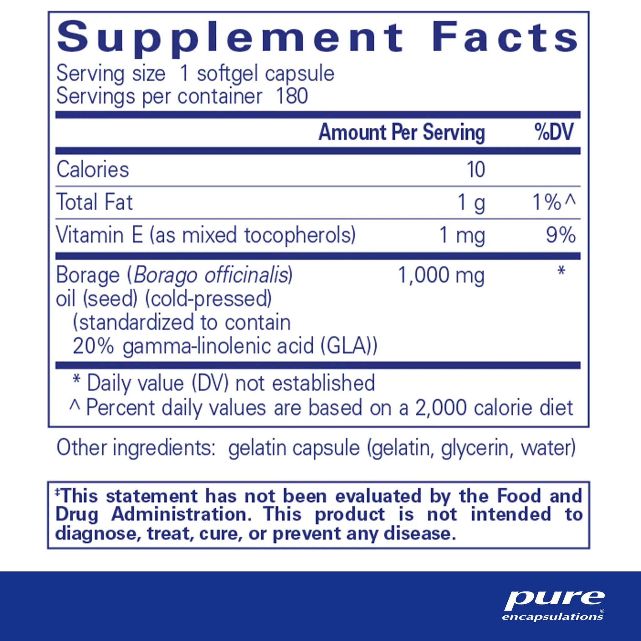 vitamin E (as mixed tocopherols), borage (Borago officinalis) oil (seed) (cold-pressed) (standardized to contain 20% GLA (gamma-linolenic acid)), gelatin capsule (gelatin, glycerin, water)